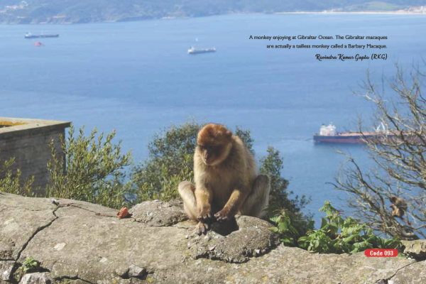 A monkey enjoying at Gibraltar Ocean. The Gibraltar macaques are actually a tailless monkey called a Barbary Macaque.
