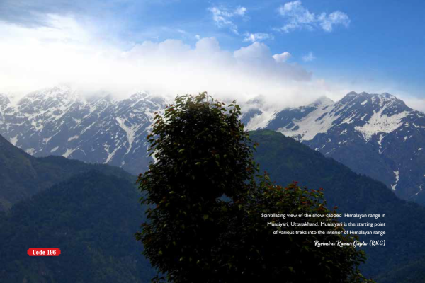 Scintillating view of the snow-capped Himalayan range in Munsiyari, Uttarakhand. Munisiyari is the starting point of various treks into the interior of Himalayan range