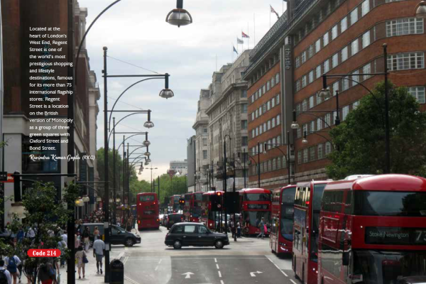 Located at the heart of London’s West End, Regent Street is one of the world’s most prestigious shopping and lifestyle destinations, famous for its more than 75 international flagship stores. Regent Street is a location on the British version of Monopoly as a group of three green squares with Oxford Street and Bond Street.