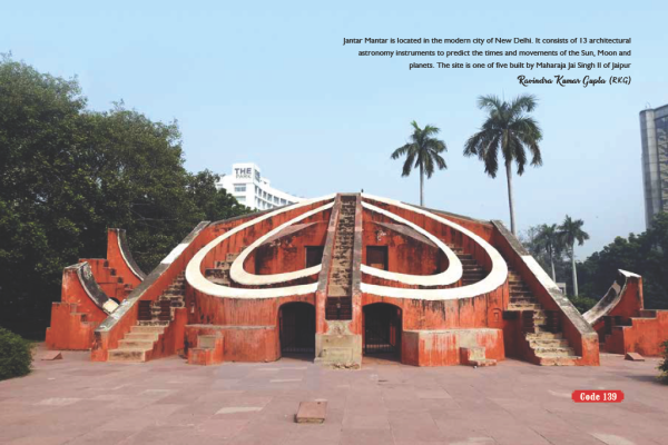 Jantar Mantar is located in the modern city of New Delhi. It consists of 13 architectural astronomy instruments to predict the times and movements of the Sun, Moon and planets. The site is one of five built by Maharaja Jai Singh II of Jaipur