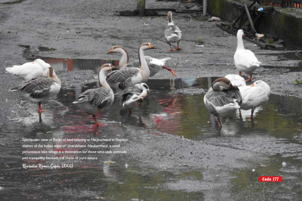 Spectacular view of flocks of bird relaxing at Naukuchiatal in Nainital district of the Indian state of Uttarakhand. Naukuchiatal, a small picturesque lake village is a destination for those who seek quietude and tranquillity beneath the shade of pure nature.