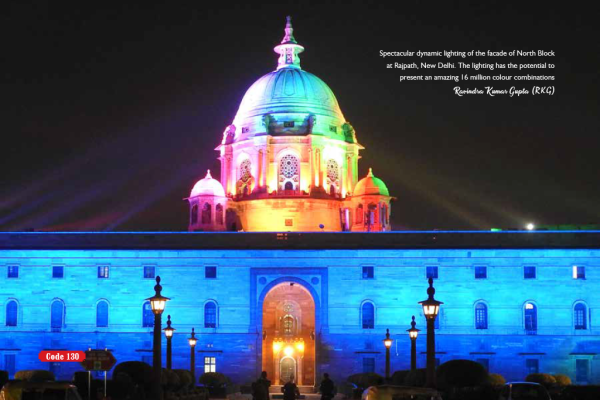 Spectacular dynamic lighting of the facade of North Block at Rajpath, New Delhi. The lighting has the potential to present an amazing 16 million colour combinations